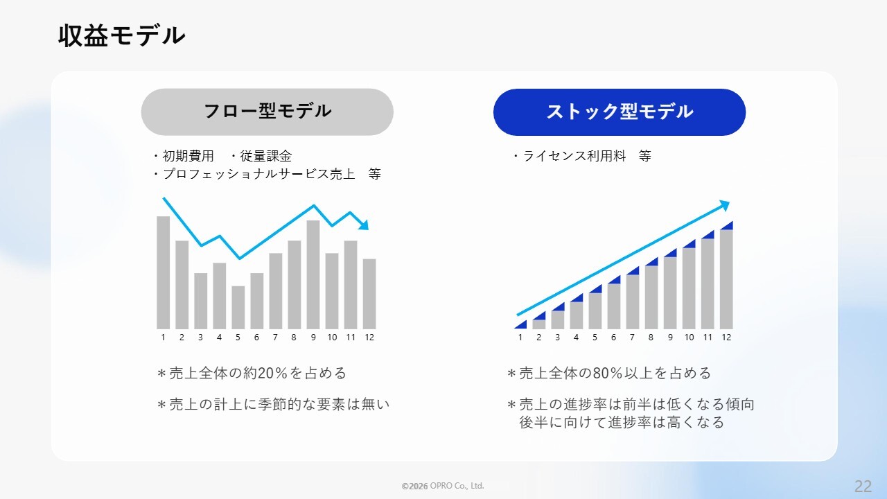 売上の80パーセントがストック型モデルであるため、前半は進捗が緩やかで、見た目の進捗率は低く見える傾向にありますが、後半にかけて大きくなっていきます。これが当社のビジネスモデルです。