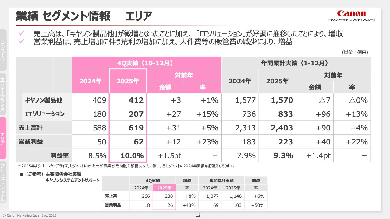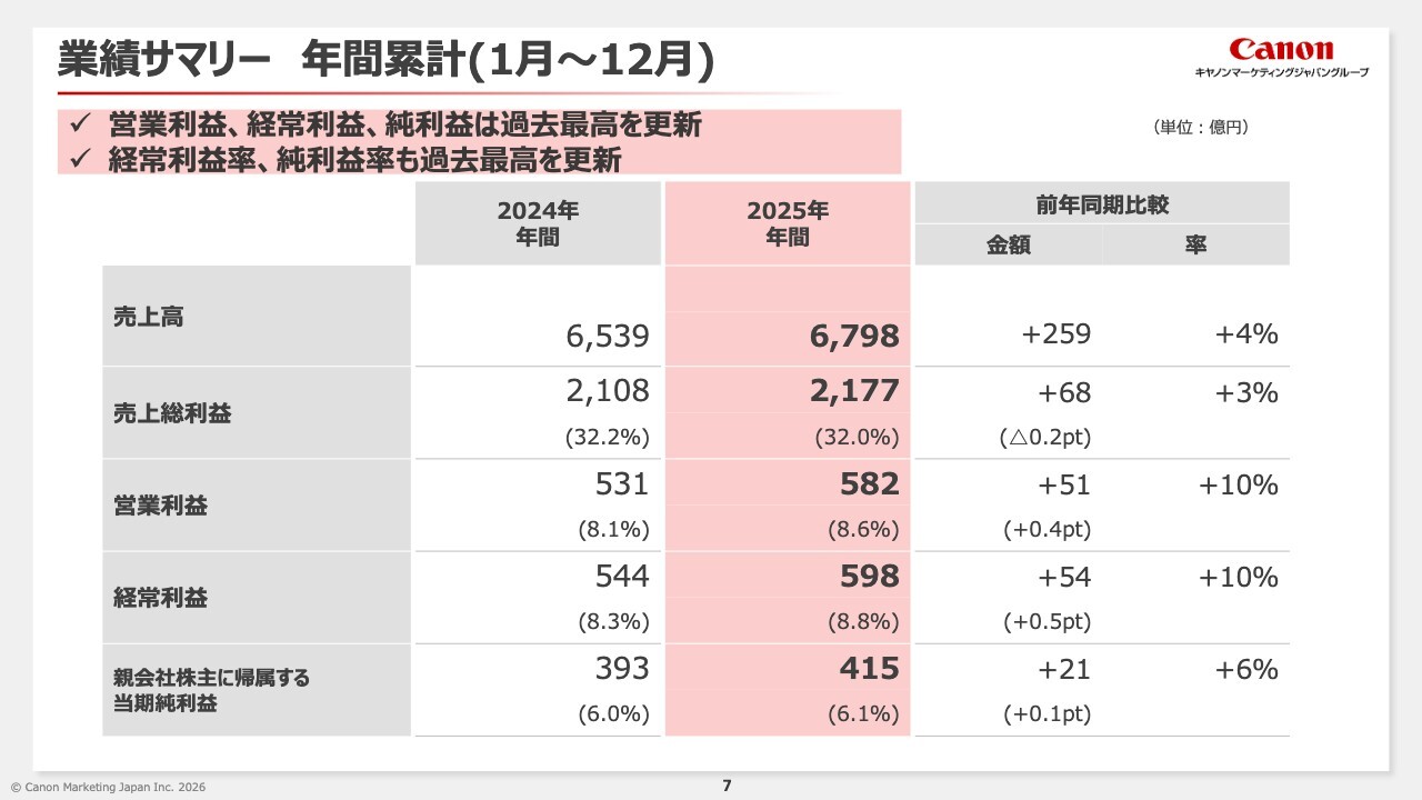 2026年1月28日に発表された、キヤノンマーケティングジャパン株式会社2025年12月期決算説明の内容を書き起こしでお伝えします。