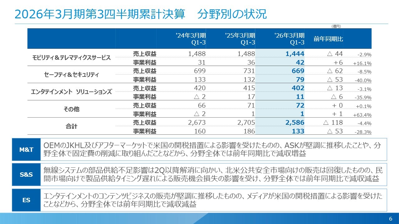 2026年3月期第3四半期累計決算 分野別の状況