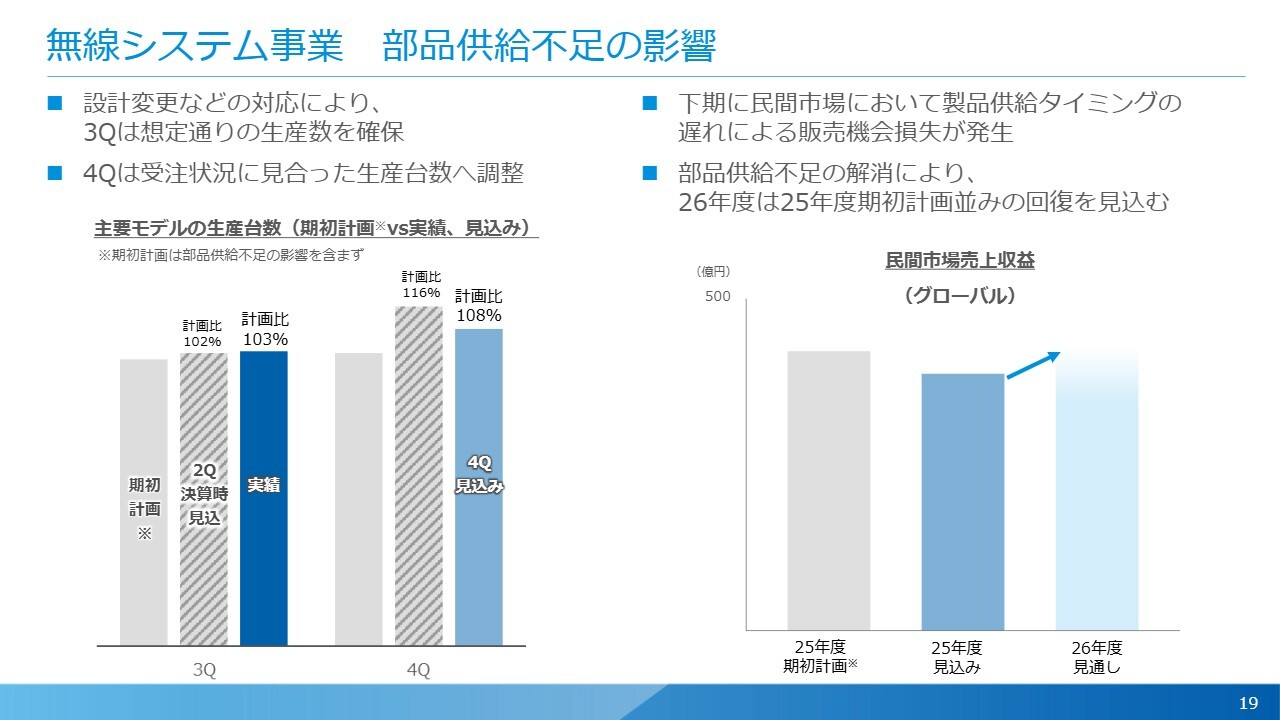 無線システム事業 部品供給不足の影響