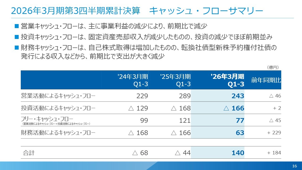 2026年3月期第3四半期累計決算 キャッシュ・フローサマリー