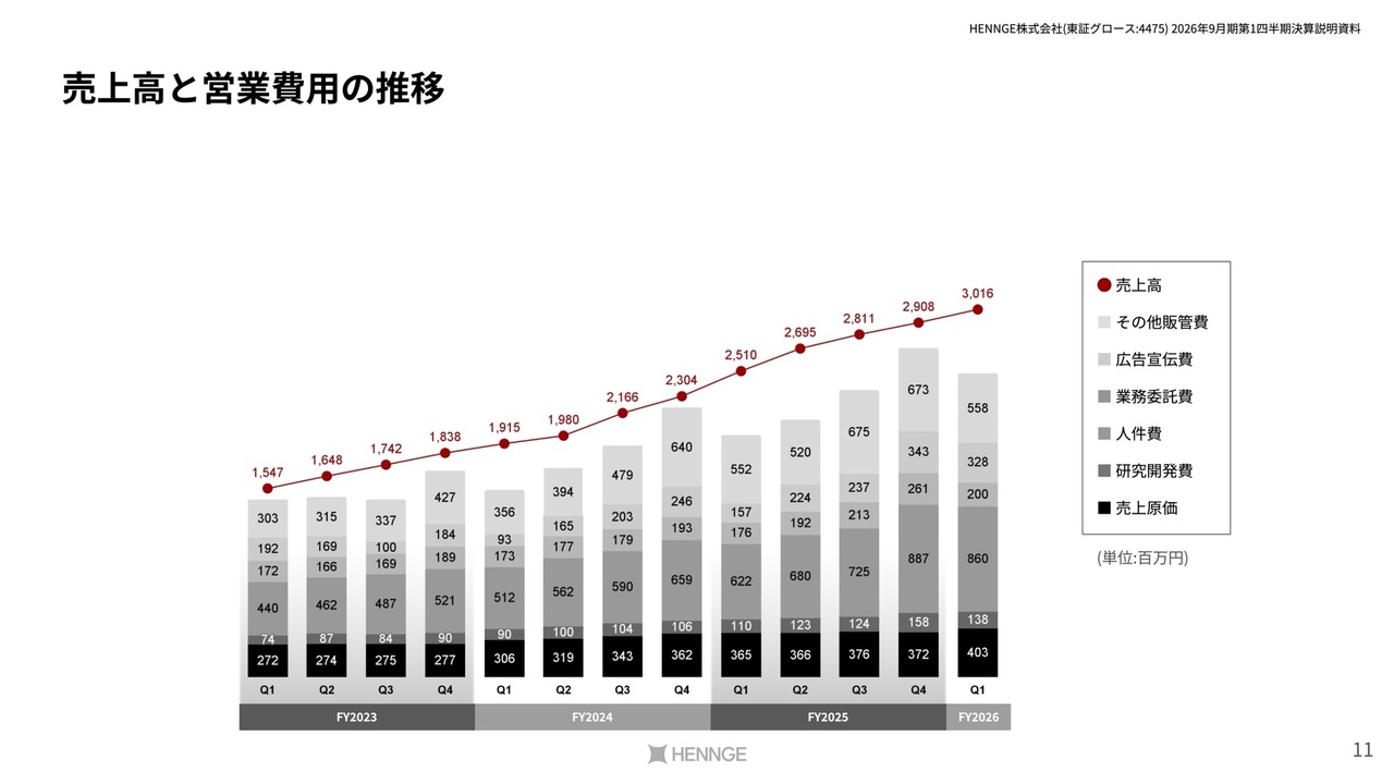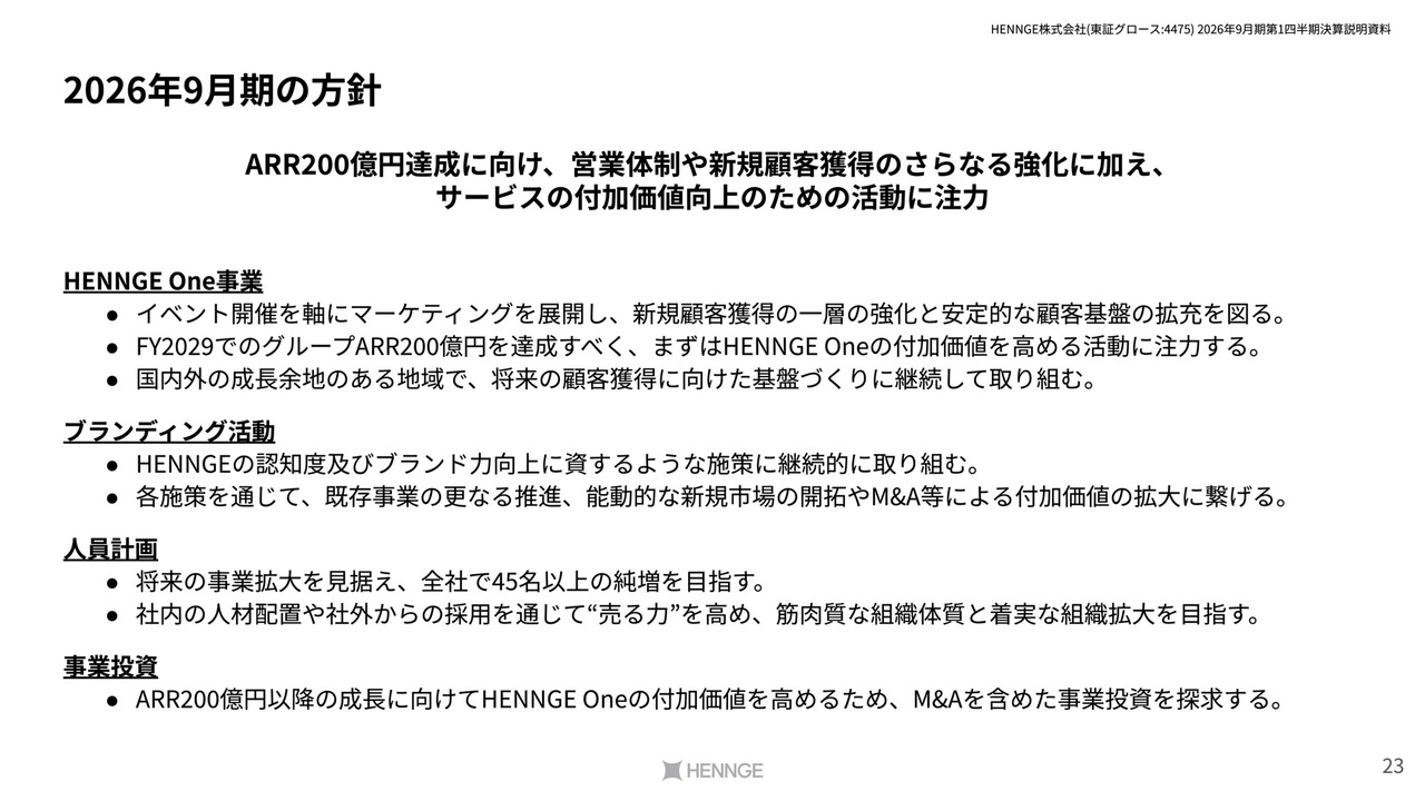 前期と同様に、当四半期においても、積極的なマーケティングおよびブランディング活動への投資を実行することができました。ARR200億円に向けた新しい付加価値の創出、そしてその先の成長に向けた積極的な費用投下を、引き続き2026年9月期を通して進めていきます。