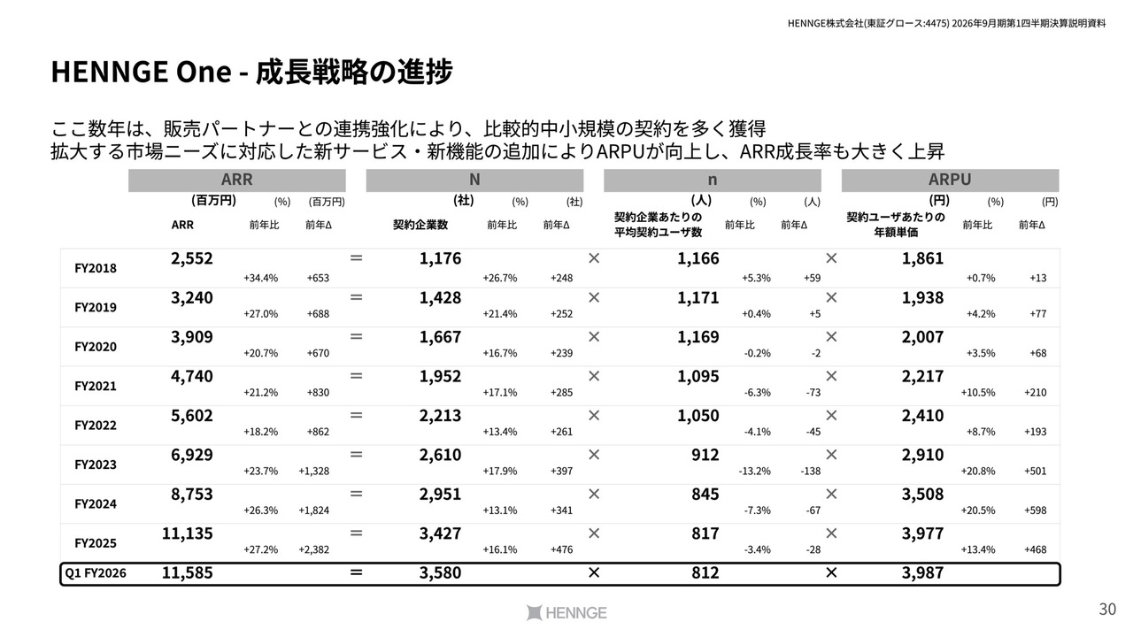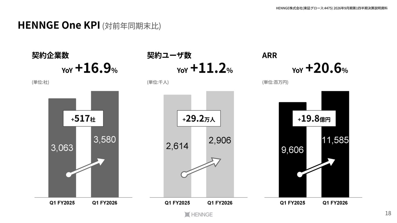 なお、ARR全体に占めるHENNGE One Proの割合は、当四半期末時点で約18パーセントです。