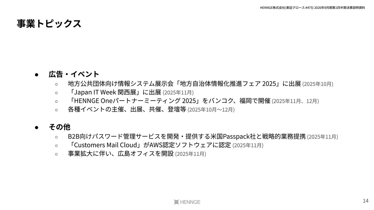 2026年2月4日に発表された、HENNGE株式会社2026年9月期第1四半期決算説明の内容を書き起こしでお伝えします。