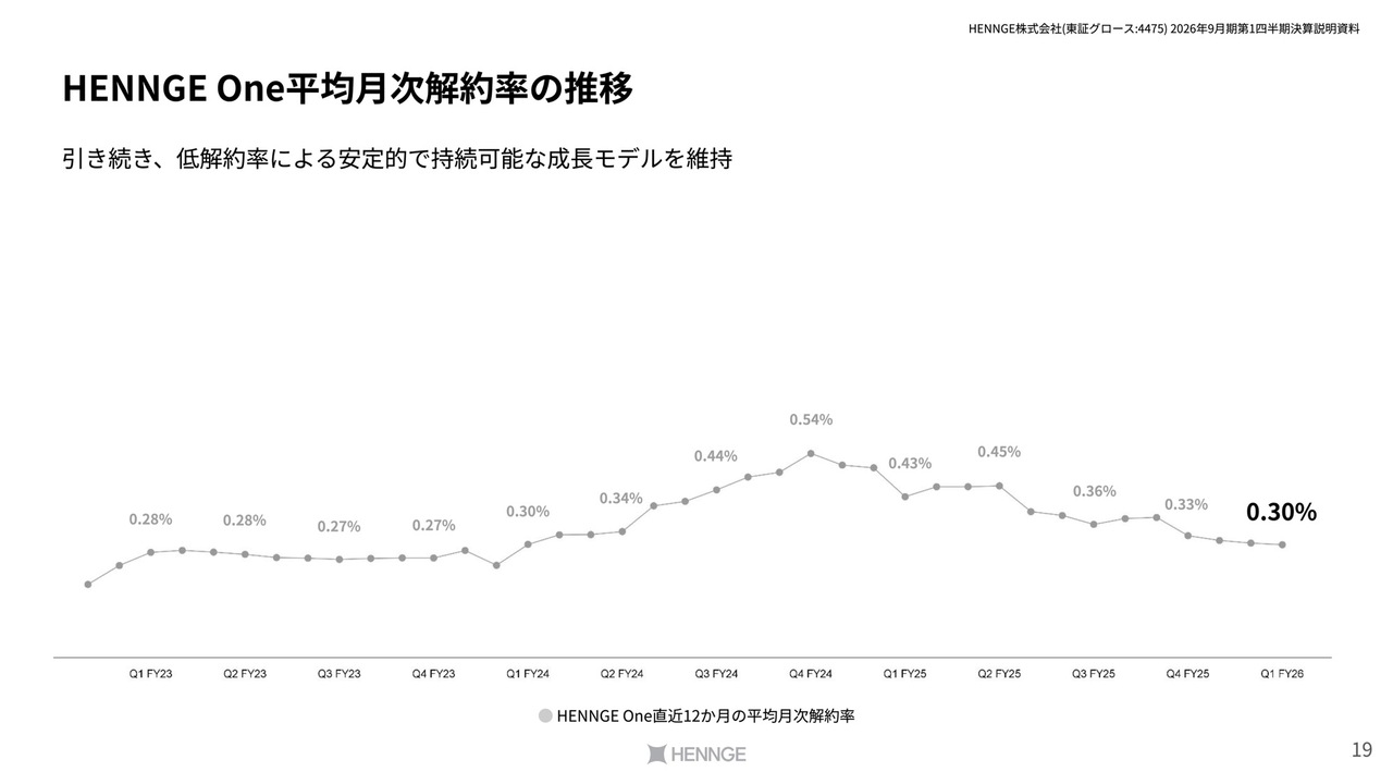 HENNGE Oneにおける3つのKPIの推移は、スライドのとおりです。HENNGE Oneを主力とする当社グループのビジネスは、基本的にサブスクリプションモデルです。当期中に獲得した契約は、解約されない限り積み上がっていき、翌期以降の売上基盤となっていきます。