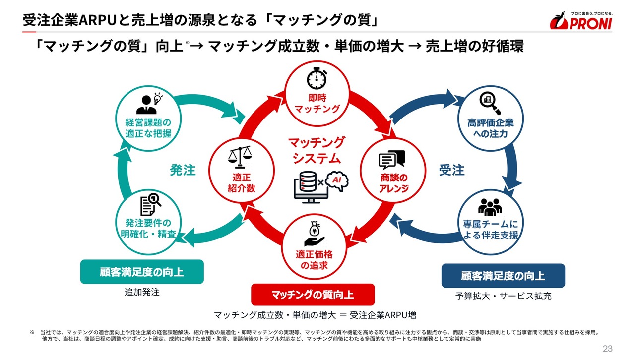 受注企業ARPUを伸ばすためには、「マッチング成立数×単価」を実現する必要があり、「マッチングの質」にこだわることで成長を達成しています。この点については、後ほど詳しくご説明します。