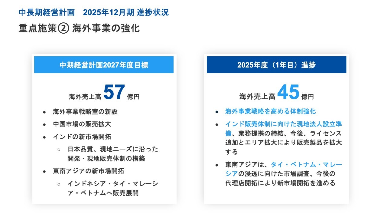 2025年12月期は海外事業戦略を高める体制強化を進めました。また、インド販売体制構築に向けた現地法人設立準備などを進めています。