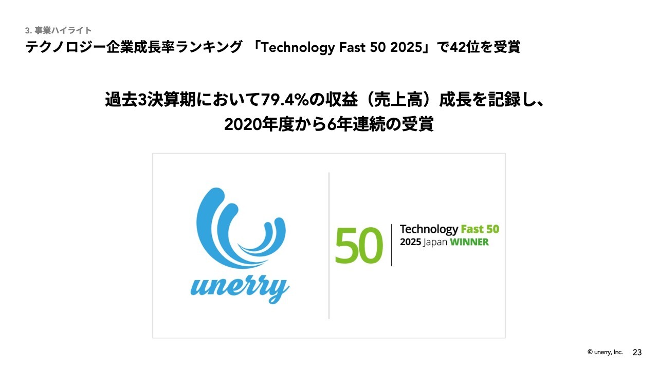 今年も、デロイトトーマツ社の「Technology Fast 50 2025」で6年連続となる成長企業ランキングに入賞しました。