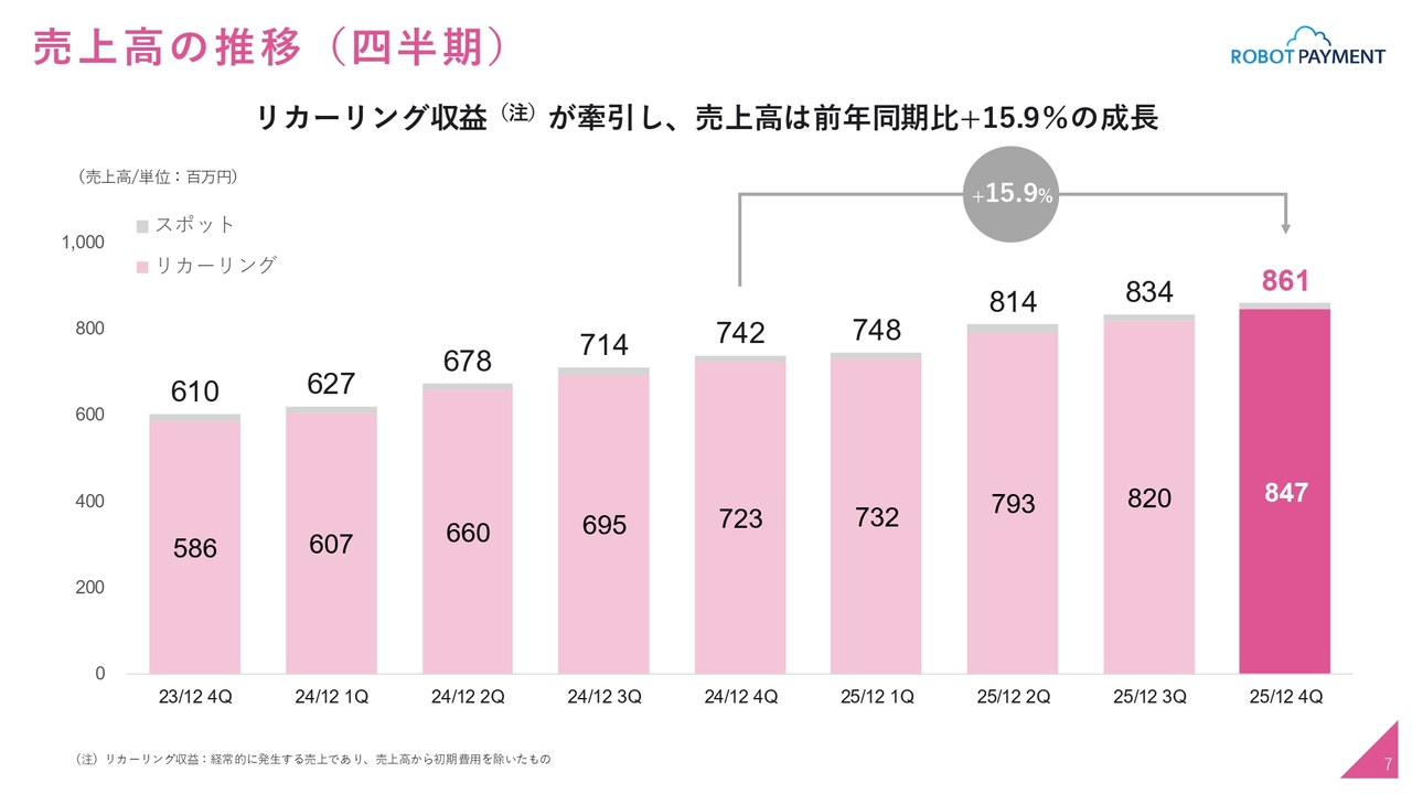 2025年12月期第4四半期は前年度の同四半期と比較して、15.9パーセントの成長を遂げました。