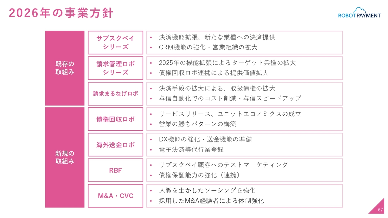 新規の取組みについては、明確に立ち上げる計画です。まず、「債権回収ロボ」では勝ちパターンを構築します。