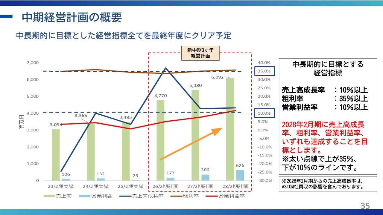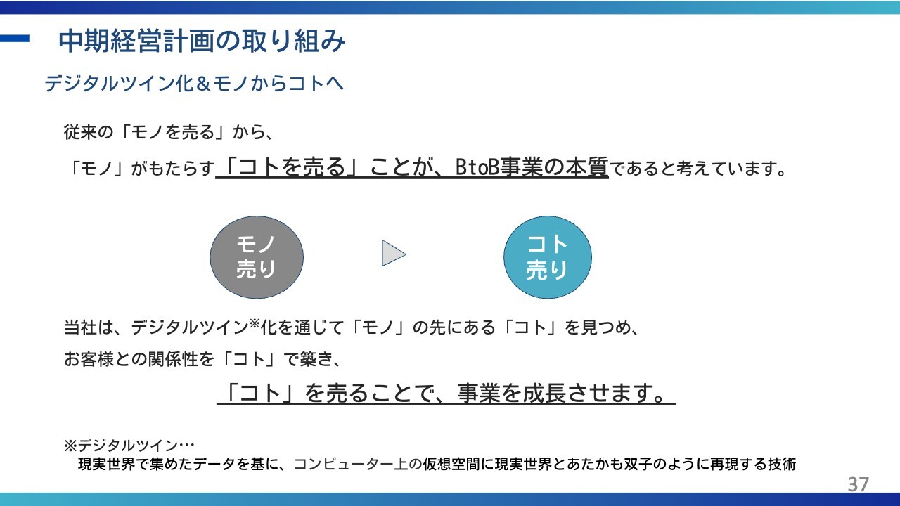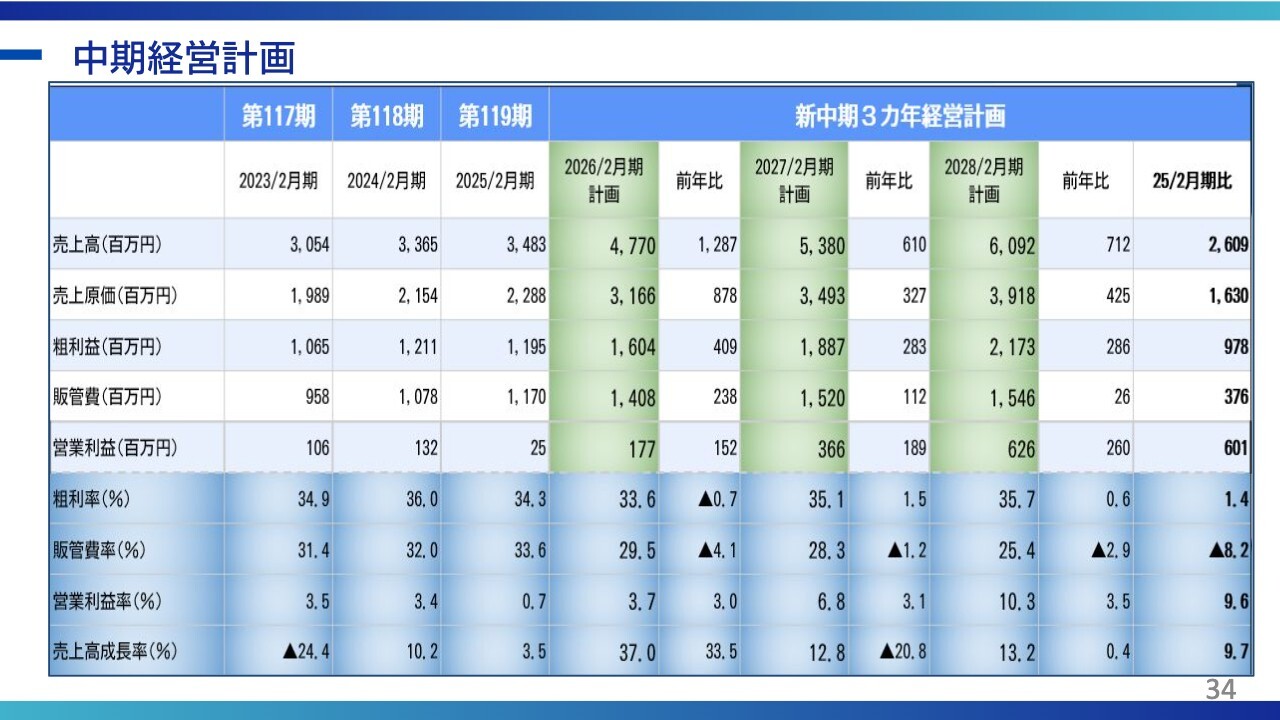 現在、事業の広がりが見えていますので、中期経営計画では、この計画を着実に実行していこうと考えています。