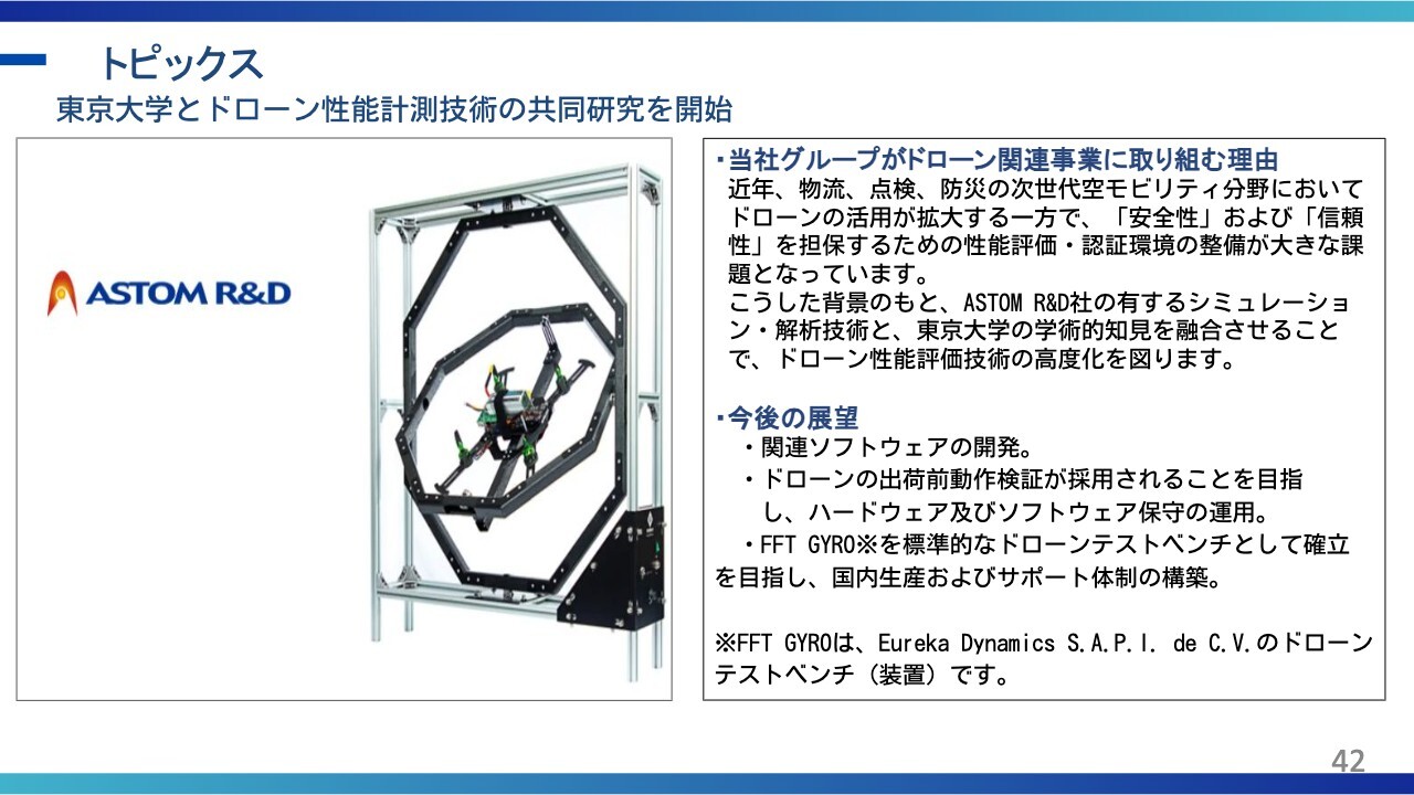 小塚:現時点では、全体のP/L(損益計算書)に影響を与えるほどの規模にはなっていません。ただ、ドローンはご存知の通り、小型・大型を問わず成長産業であることは間違いありません。
