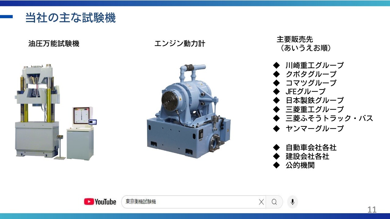 小塚:スライドには当社の主な試験機が示されています。例えば、油圧万能試験機などが挙げられます。