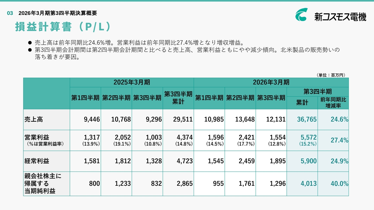 03_2026年3月期第3四半期決算概要 損益計算書(P/L)