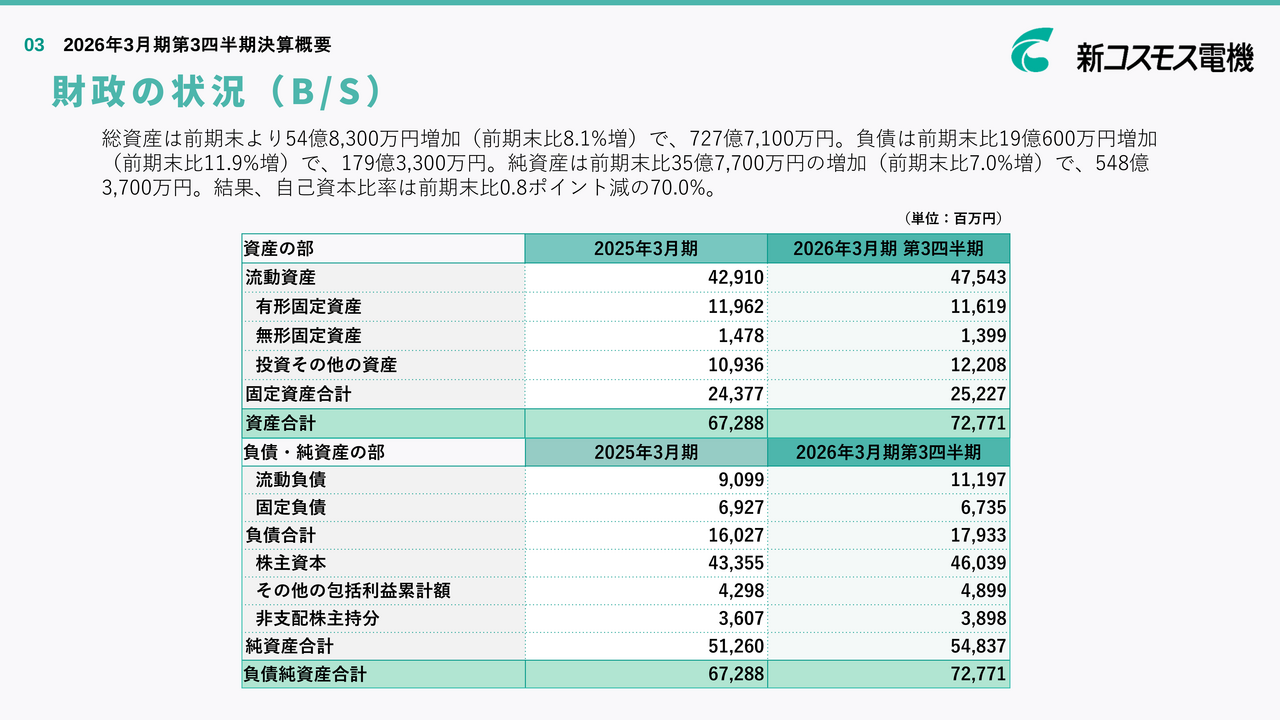 03_2026年3月期第3四半期決算概要 財政の状況(B/S)