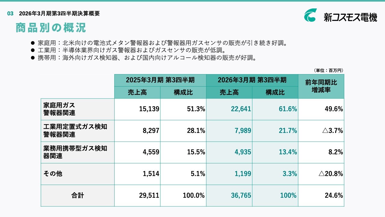 03_2026年3月期第3四半期決算概要 商品別の概況