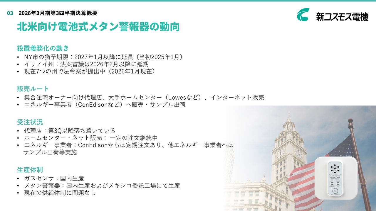 03_2026年3月期第3四半期決算概要 北米向け電池式メタン警報器の動向