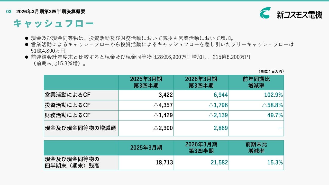 03_2026年3月期第3四半期決算概要 キャッシュフロー