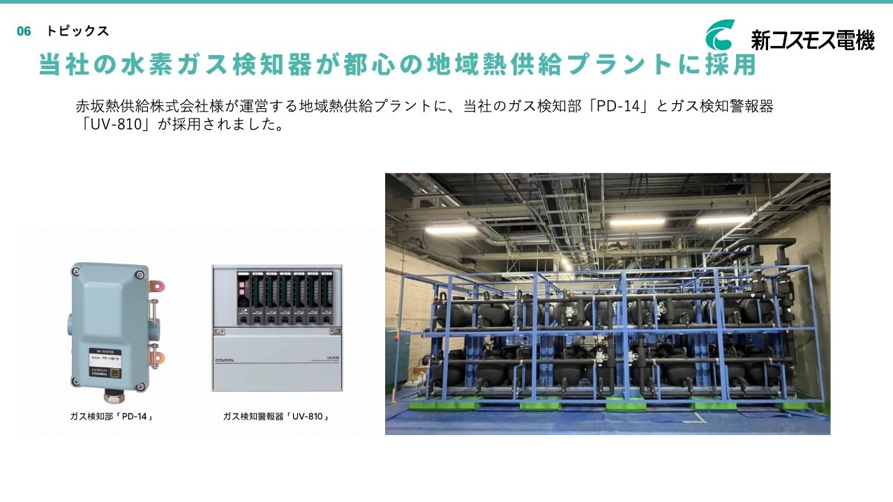 06_トピックス 当社の水素ガス検知器が都心の地域熱供給プラントに採用