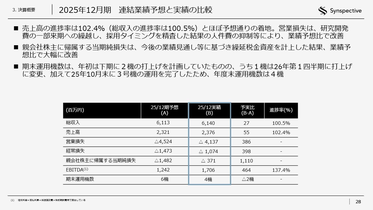 志藤篤氏(以下、志藤):Synspective取締役CFOの志藤です。私から、2025年の実績と2026年の業績見通しについてご説明します。概略は、新井がご説明したとおりです。
