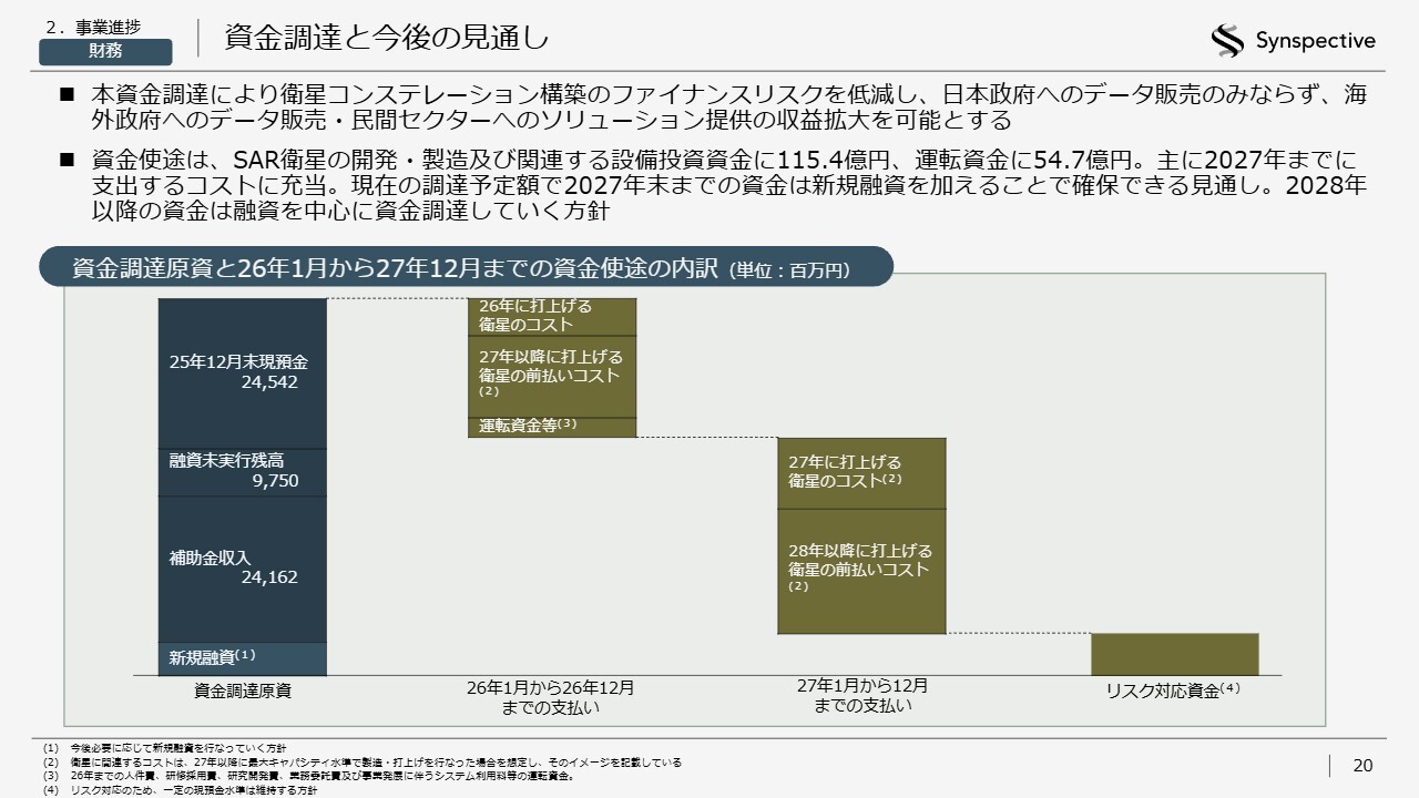 今後、事業拡大や加速の過程で追加の調達が引き続き発生する見込みですが、融資によるファイナンスがかなり容易になったこともあり、2028年以降はそうした融資を効果的に活用しながら調達を進めることが可能になってきたと見ています。