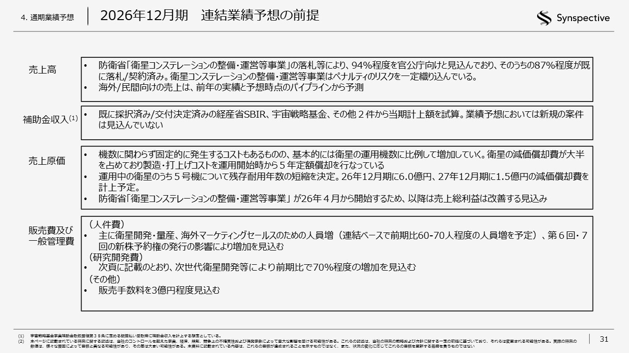 2026年12月期の連結業績予想の前提についてです。売上高は国内外の政府向け売上が大きな割合を占めており、相当の割合がすでに落札もしくは契約済みとなっています。