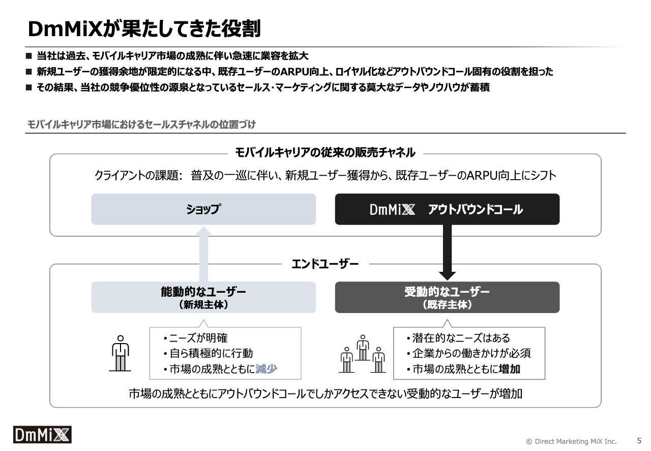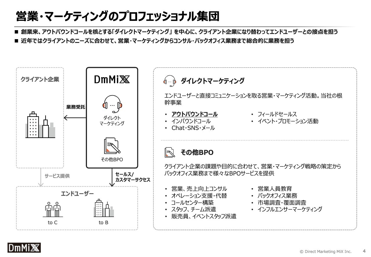 ビジネスモデルです。ダイレクトマーケティングミックスは、2007年に前身となる会社を創業しました。