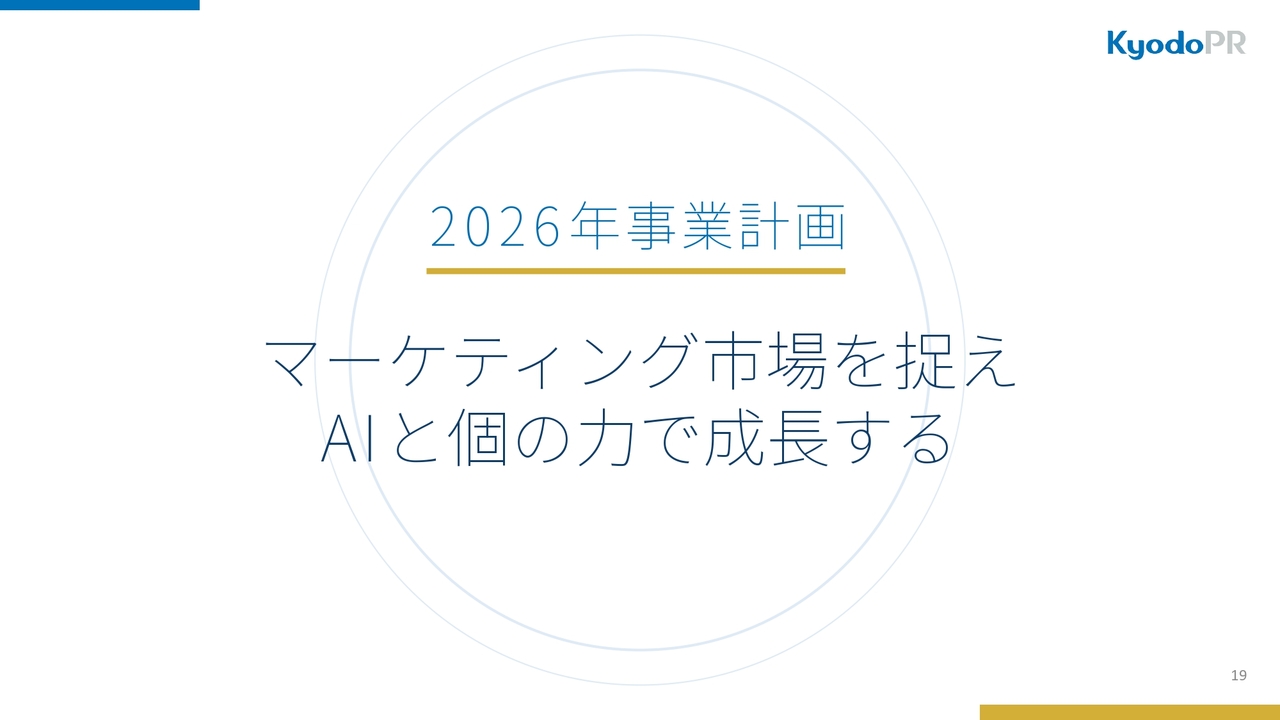 ここからは、今期の事業戦略についてお話しします。2026年事業計画のテーマを「マーケティング市場を捉えAIと個の力で成長する」と設定しました。