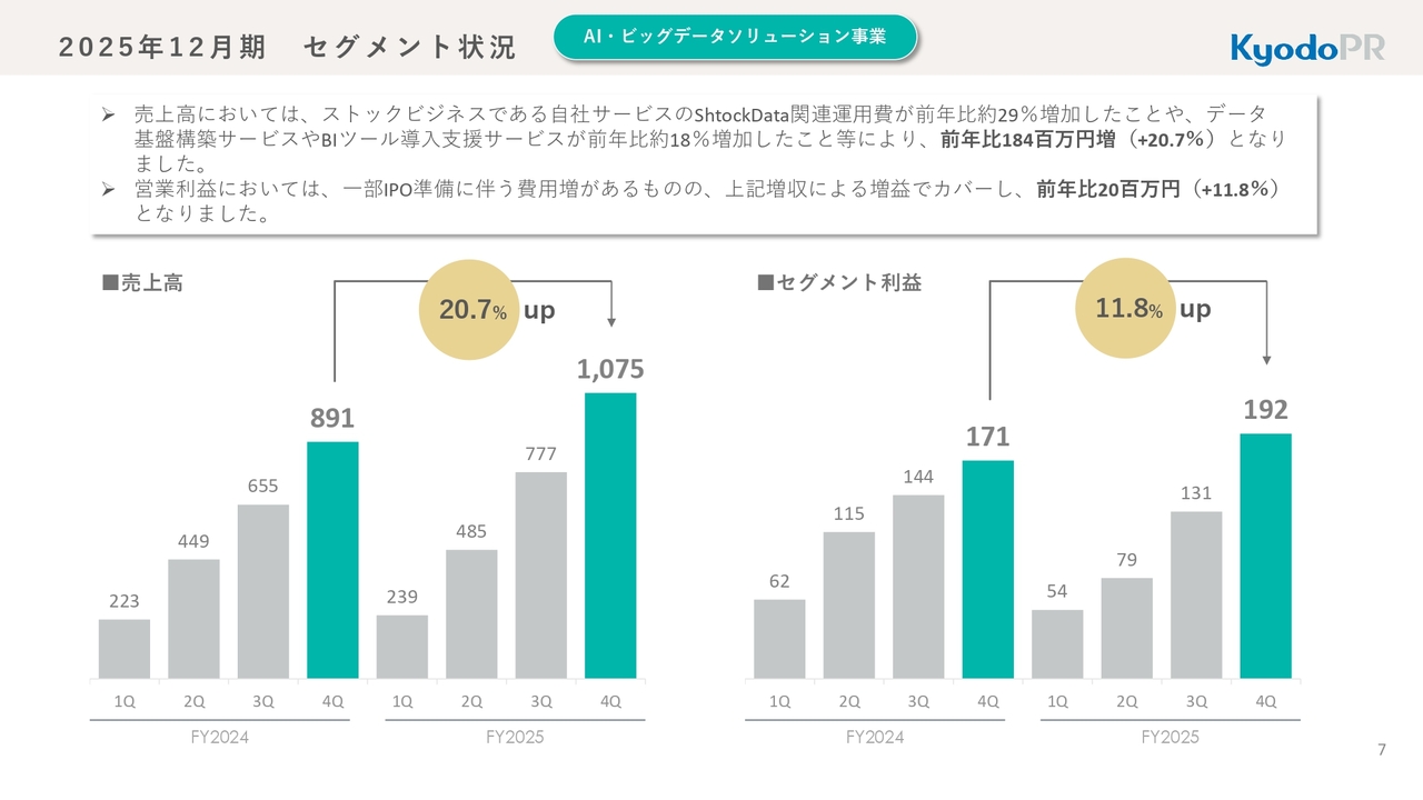 2025年12月期 セグメント状況 AI・ビッグデータソリューション事業