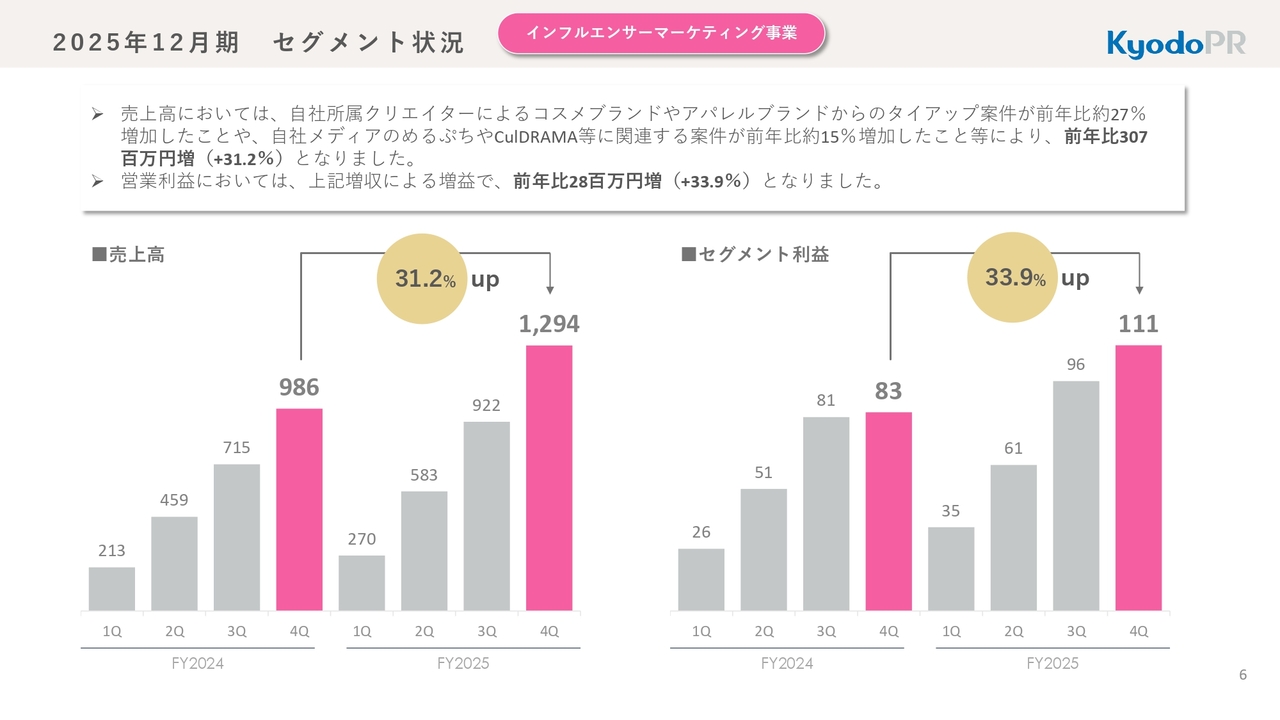 2025年12月期 セグメント状況 インフルエンサーマーケティング事業