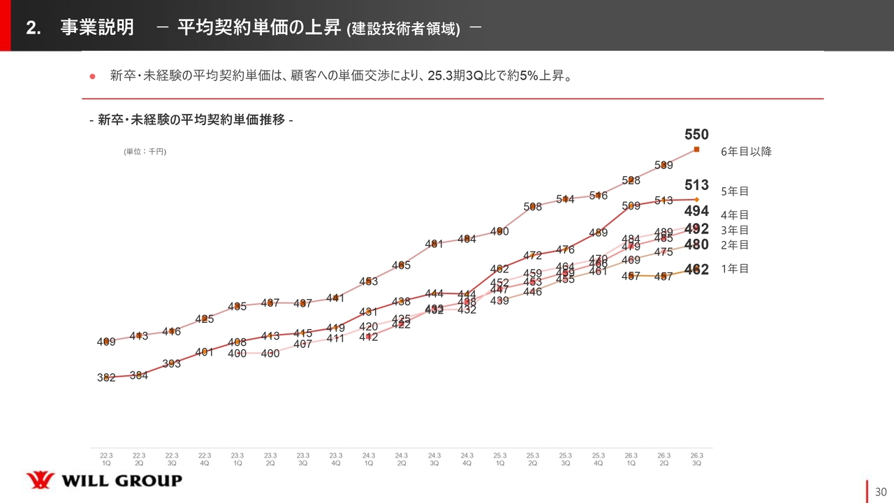 2. 事業説明 -平均契約単価の上昇(建設技術者領域)-