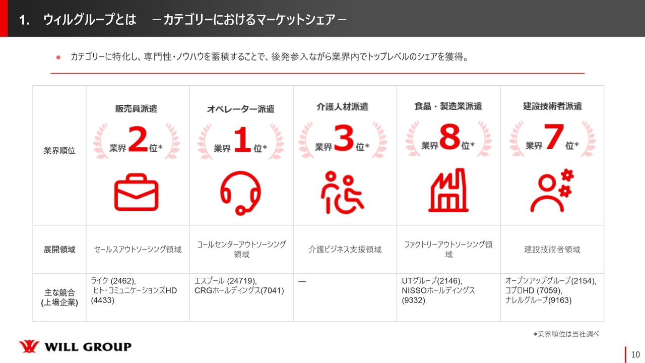 1. ウィルグループとは -カテゴリーにおけるマーケットシェア-