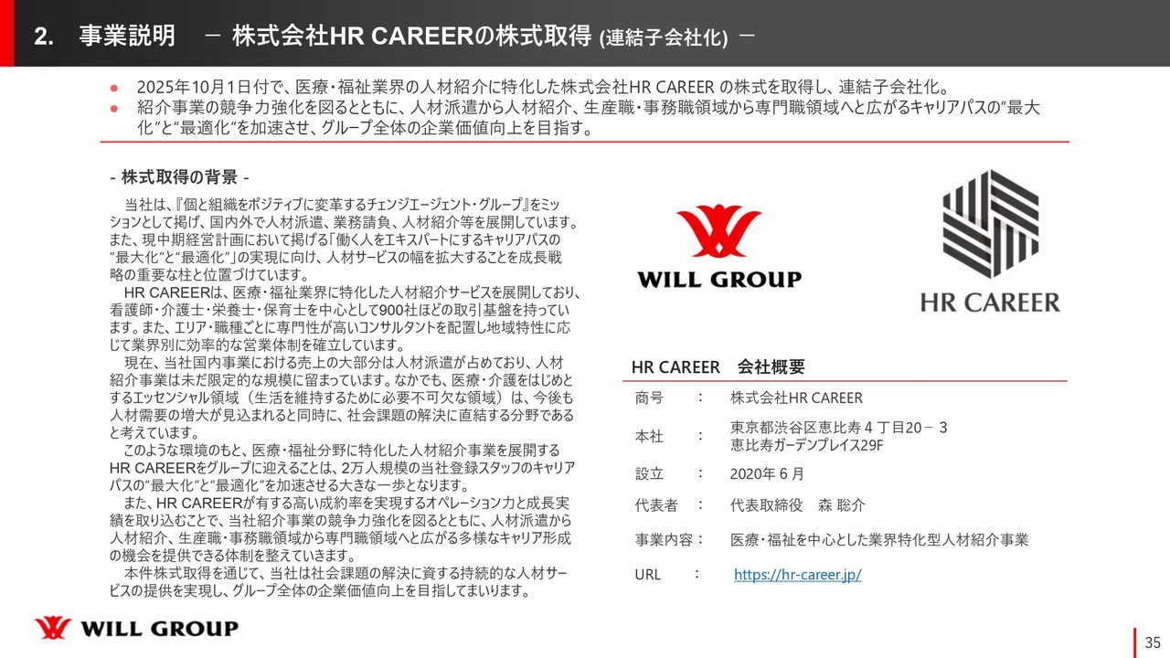 2. 事業説明 -株式会社HR CAREER の株式取得(連結子会社化)-