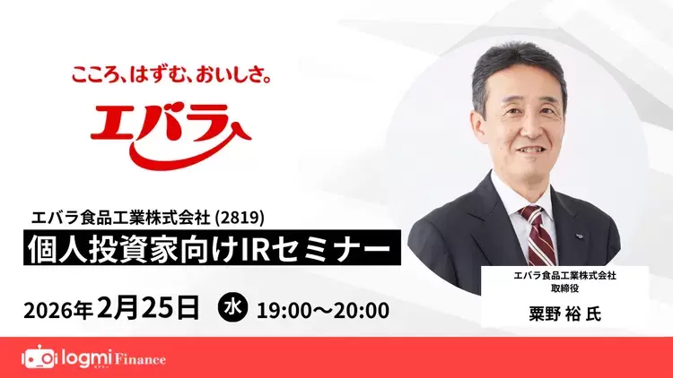 事業内容や成長戦略に触れ、「もっと詳しく知りたい」「経営トップの考えを直接聞きたい」と感じた方へ。エバラ食品工業 取締役・粟野 裕氏が自ら最新の業績や今後の成長戦略、投資家が注目すべきポイントをライブ配信で丁寧に解説します。