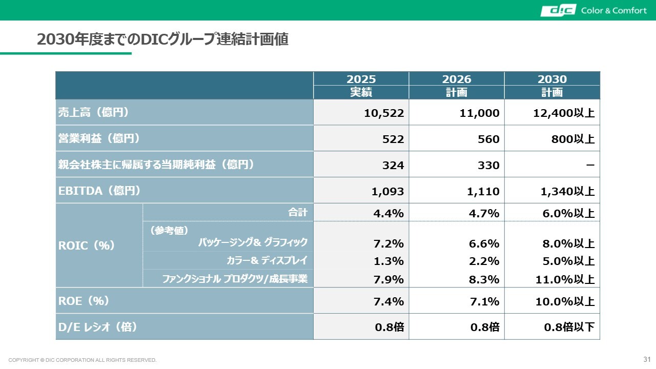 2030年度までのDICグループ連結計画値