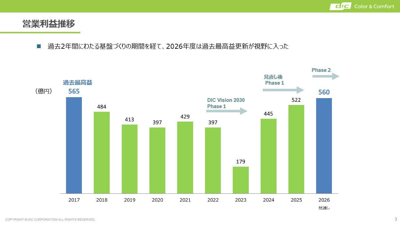 2026年度は増収増益を見込んでいます。私は2024年の社長就任以来、2024年度と2025年度を基盤構築の期間と位置付け、2026年度に過去最高益を目指すことを経営目標の1つとして取り組んできました。