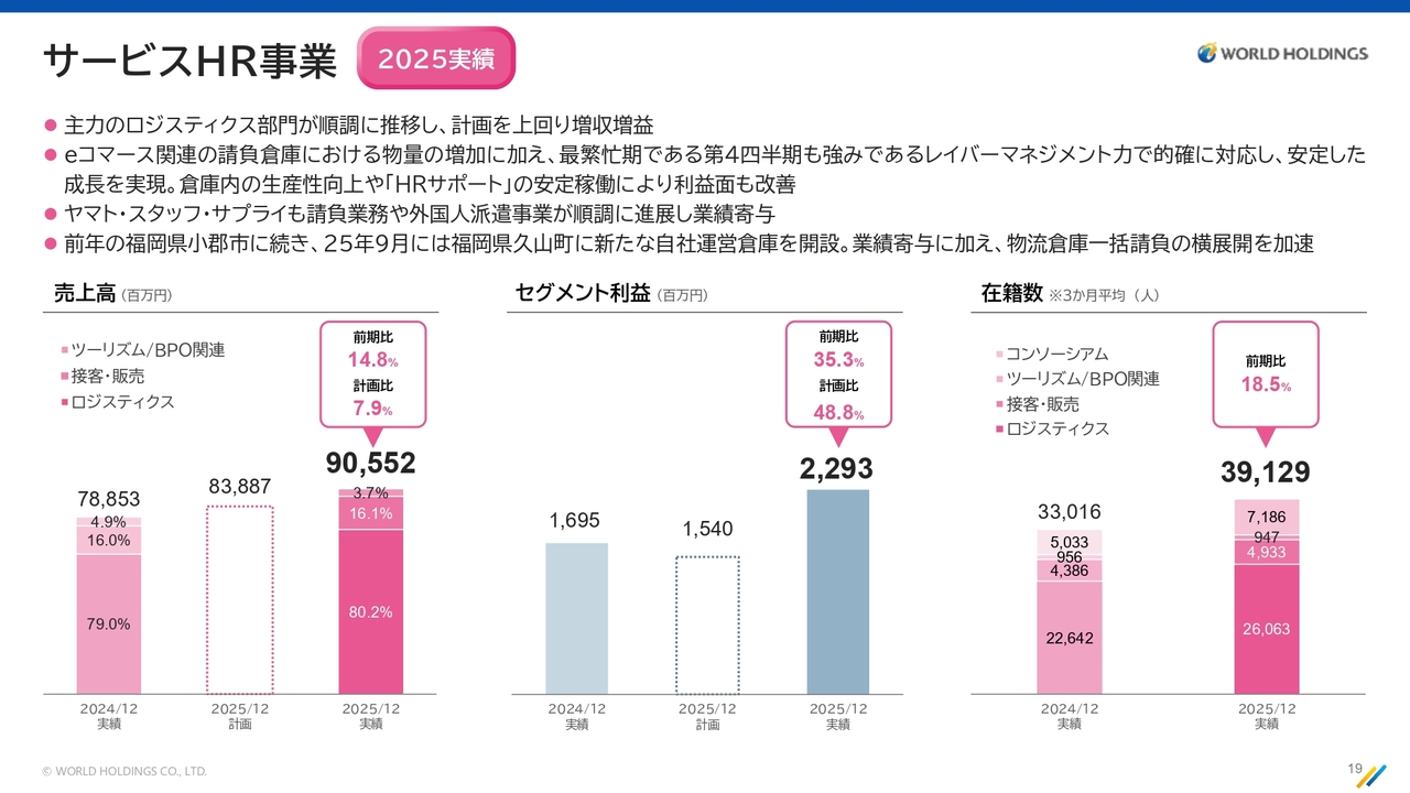 ロジスティクスおよび接客・販売事業を中心に展開するサービスHR事業について、2025年の成果をご説明します。