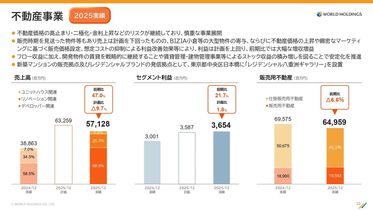 桑原伸一郎氏:不動産事業分野については、桑原がご説明します。スライドは2025年の実績です。
