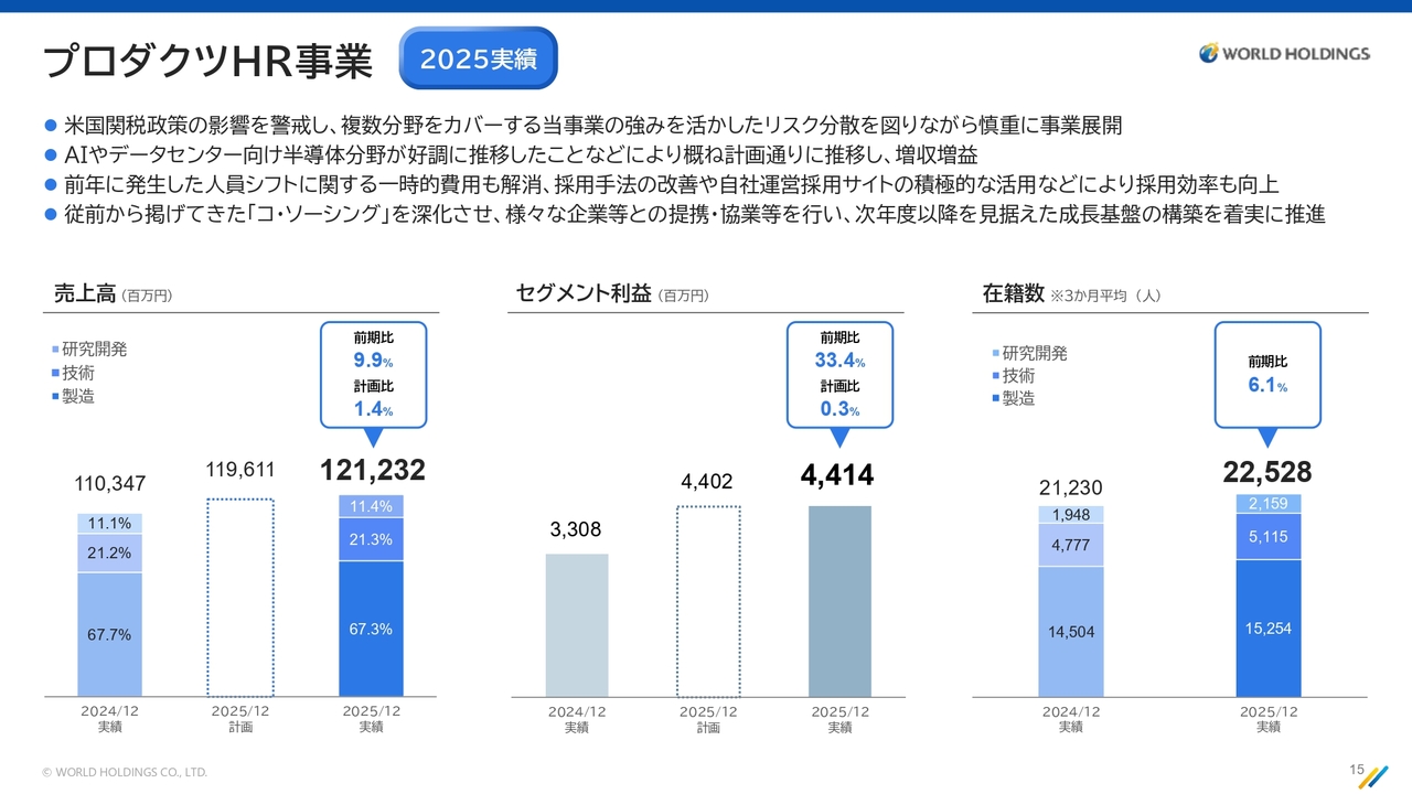 この2つの事業について、昨年度の実績、今期の見通し、計画をどのように達成するかについてご説明します。まず、プロダクツHR事業の2025年の実績についてご説明します。