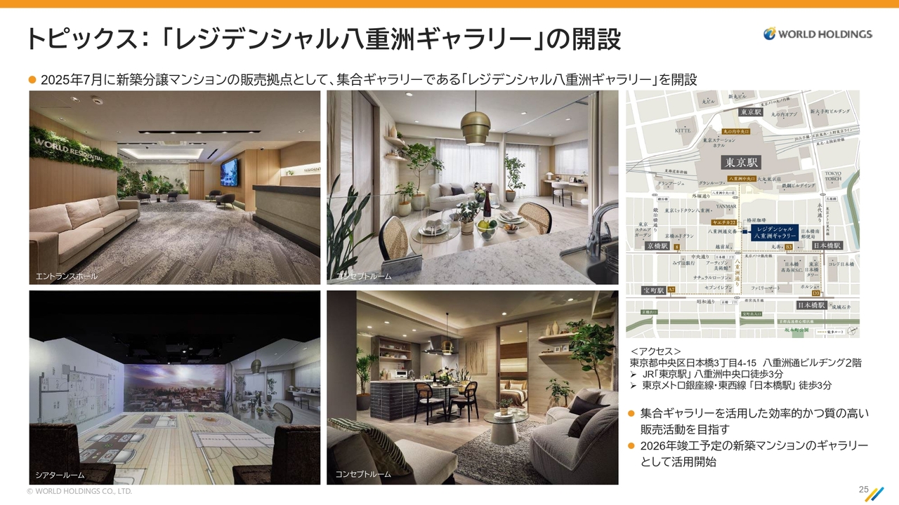 昨年のトピックとして、後ほどご説明しますが、レジデンシャルブランドの発信拠点として、自社ビルである八重洲に「レジデンシャル八重洲ギャラリー」という常設のギャラリーを設けました。