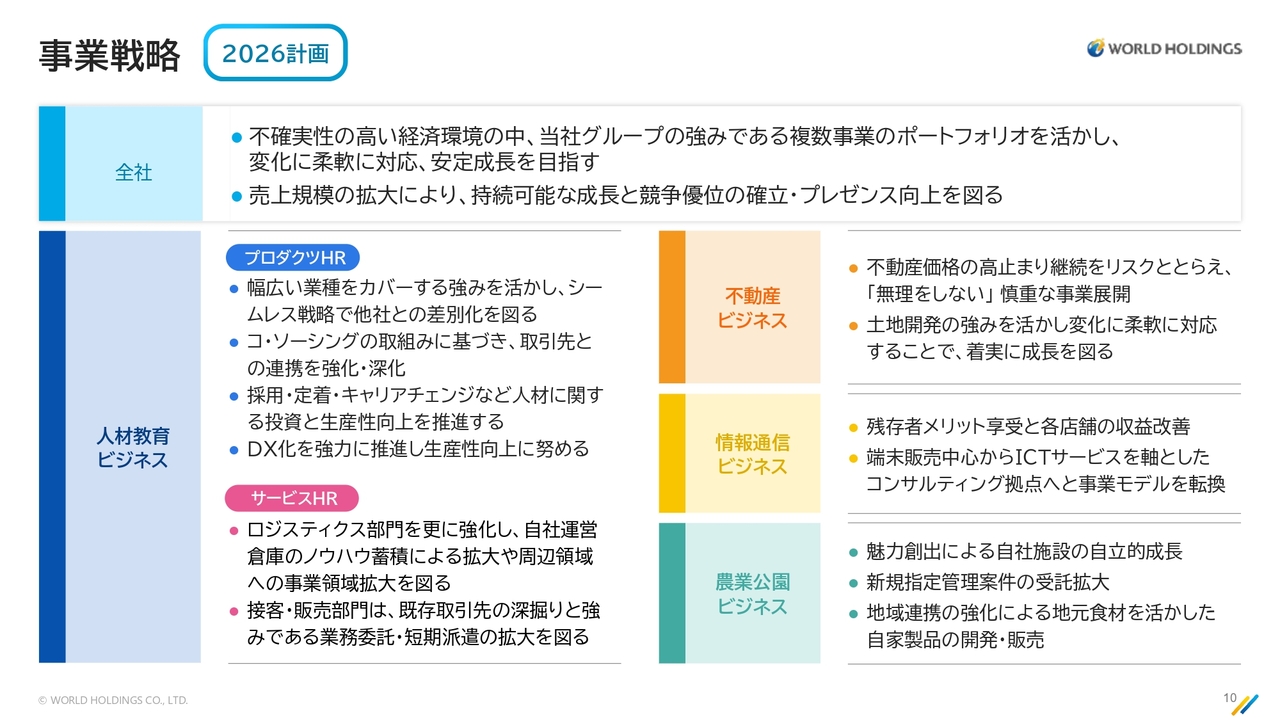 2026年の事業戦略です。人材教育ビジネスの分野において、当社はすでにトップランナーとなっています。我々は新たな事業を創出していく立場です。