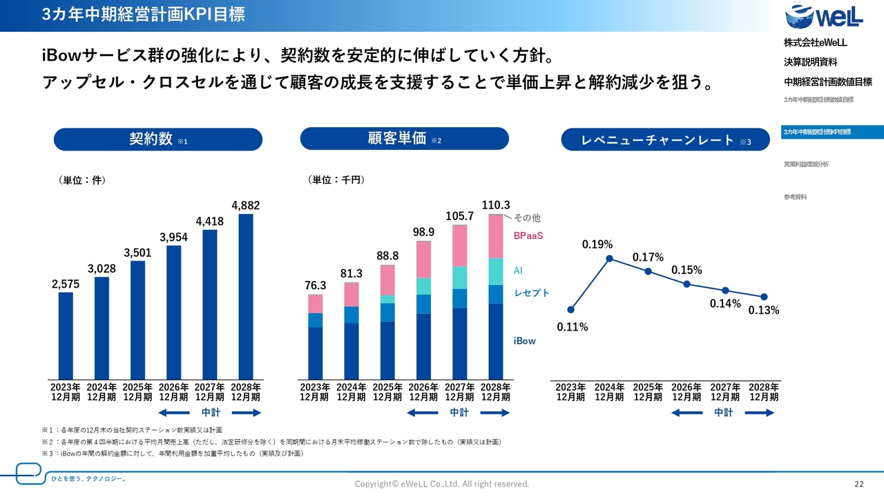 顧客単価については、AIサービスの収益化による成長を軸に単価アップを目指し、2028年12月期は11万300円を目指します。AIサービスの利便性を高めることやBPaaSの浸透により、生産性改善が実現することで「iBow」の単価にも寄与するものと考えています。