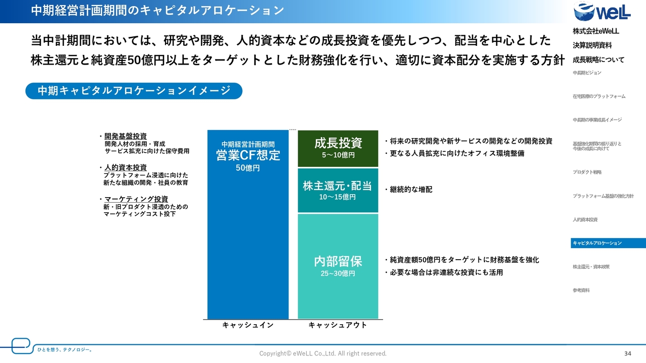 成長投資だけでなく、配当もバランスよく行うことで長期的な事業成長を目指していきます。
