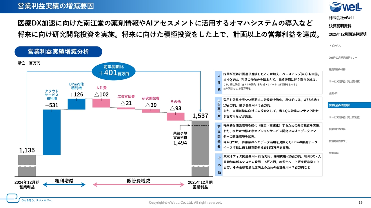 2025年12月期の営業利益実績の増減要因についてご説明します。