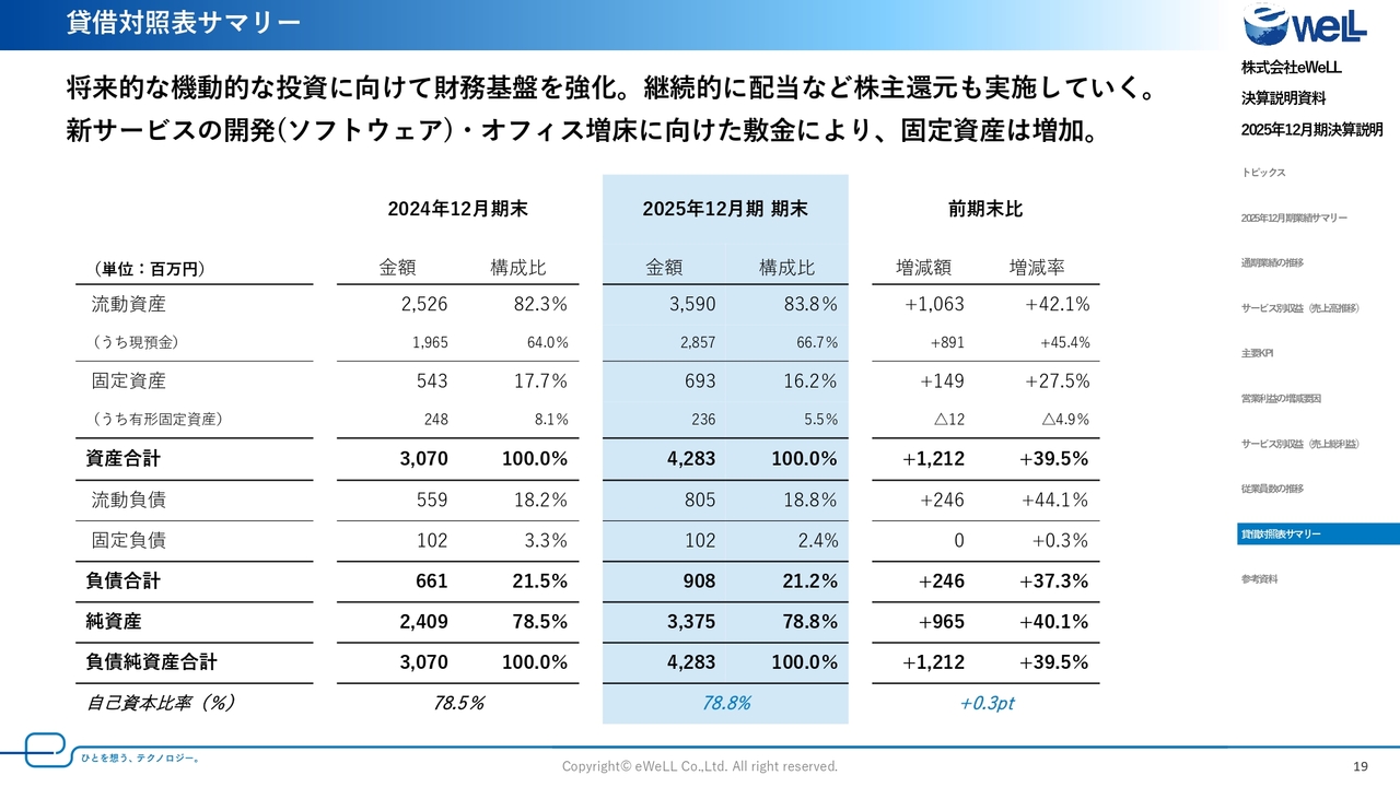貸借対照表サマリーです。