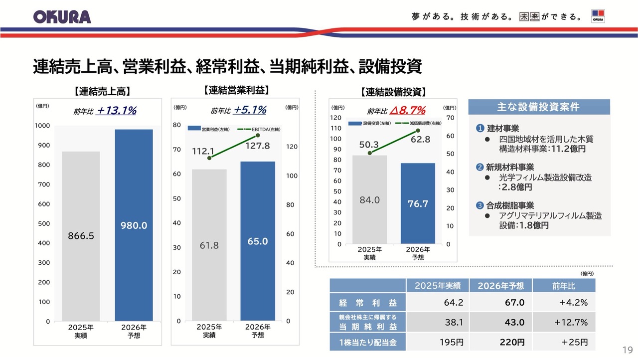 大倉工業、連結営業利益・経常利益が過去最高益を更新、光学フィルム堅調により26年も増収増益計画、過去最大の配当を予定