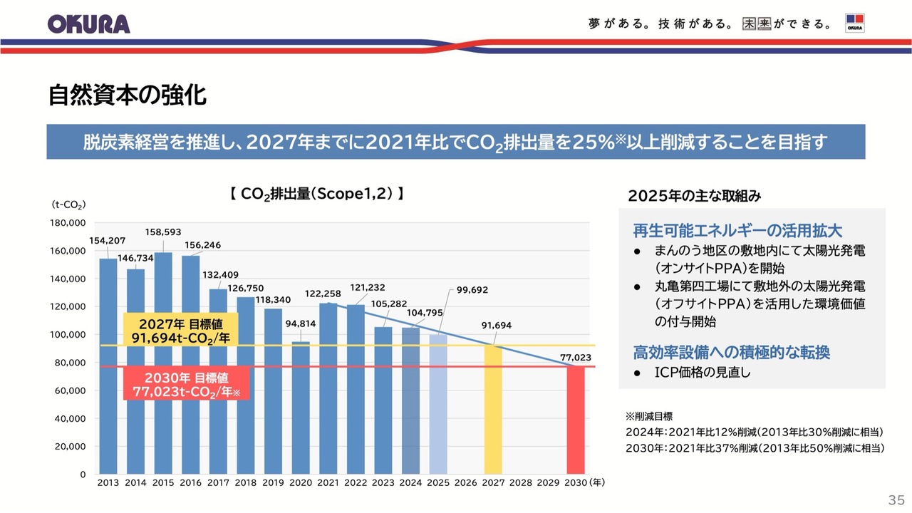 自然資本の強化では、特にCO2排出量削減に注力し、2027年までに2021年比で25パーセント以上削減するという目標を掲げています。