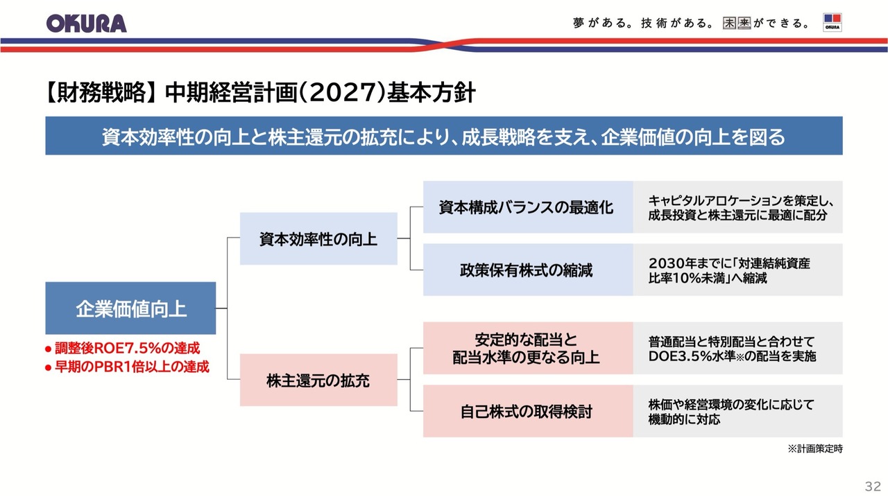 そして、当中期経営計画期間中では株主還元のさらなる拡充を目指し、DOE3パーセントの普通配当に加えて、0.5パーセント相当の特別配当を実施することで、合計3.5パーセント水準の配当を目指してきました。