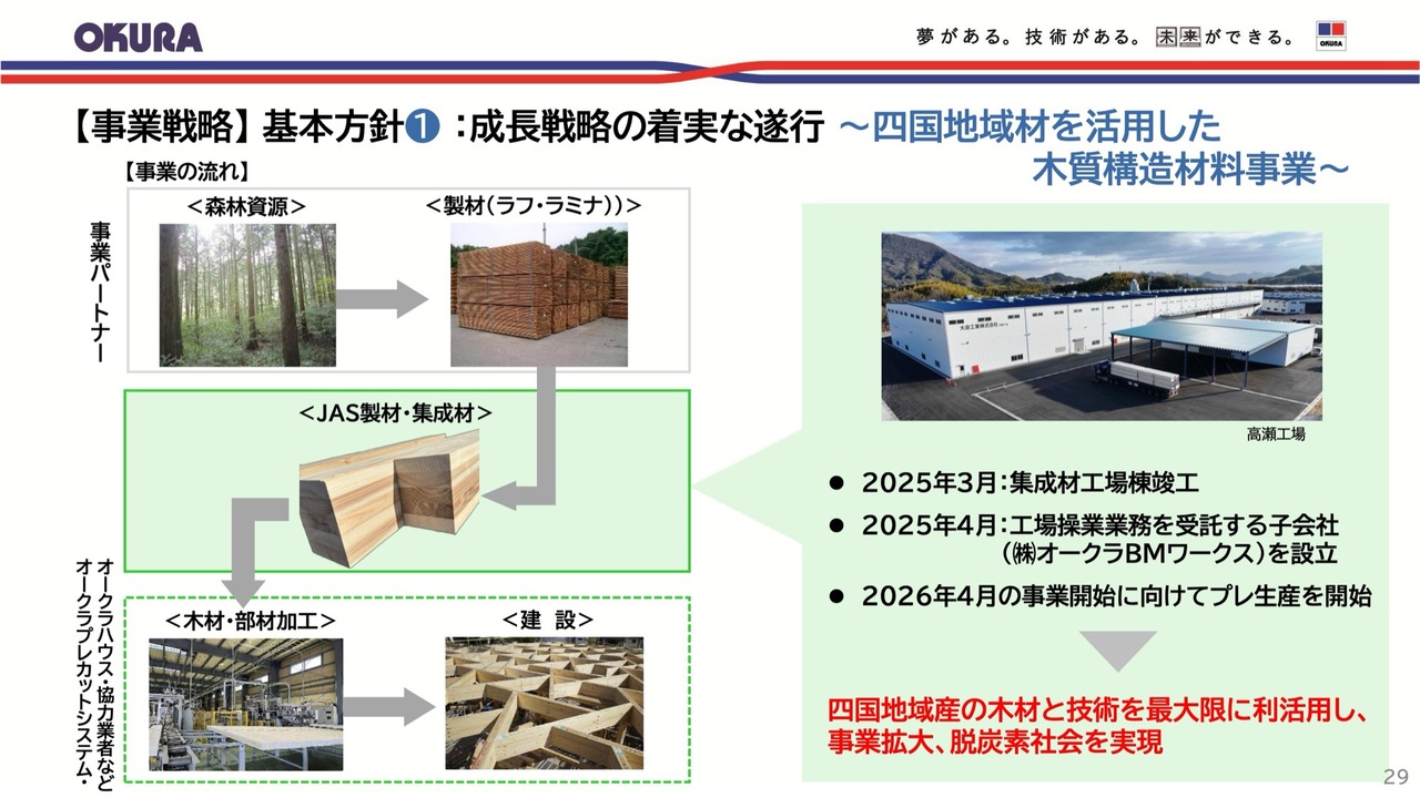 【事業戦略】基本方針①:成長戦略の着実な遂行 〜四国地域材を活用した木質構造材料事業〜