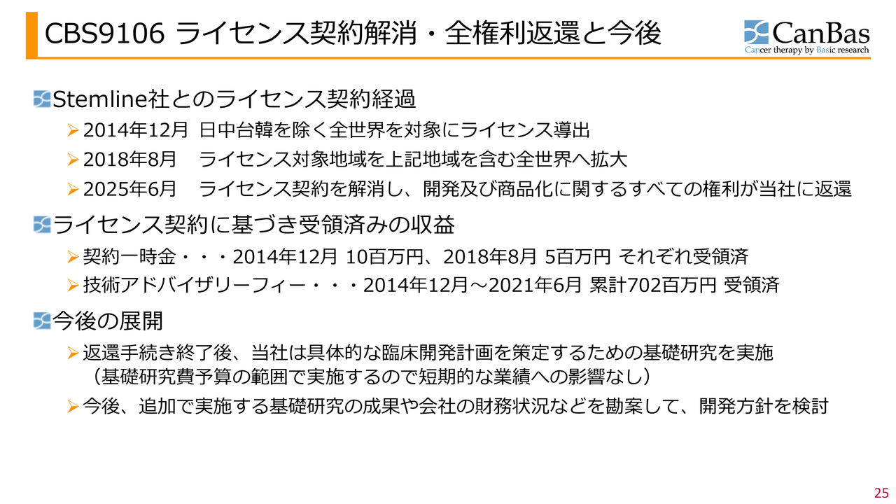 CBS9106 ライセンス契約解消・全権利返還と今後